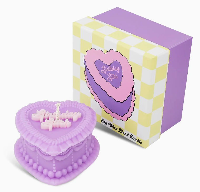 This insanely cute candle is meant to mimic the appearance of a vintage heart-shaped cake. You know the ones, covered in frosting, over the top. A home decor piece, gift, and candle all in one! This shape and saying is completely unique and one of a kind to us. We designed the mold from scratch, so these aren't available molds that anyone can make! These candles are big, unscented, and meant to make an adorable and hilarious statement. The candle is unscented. Each candle comes in a super cute box, and all boxes complement each other for a super cute and easy merchandising experience.