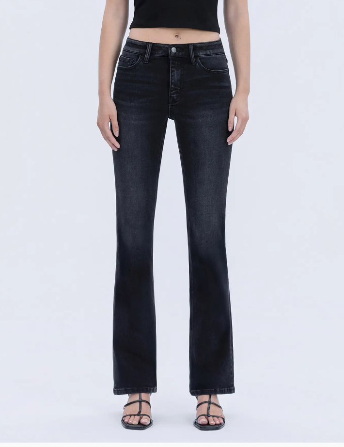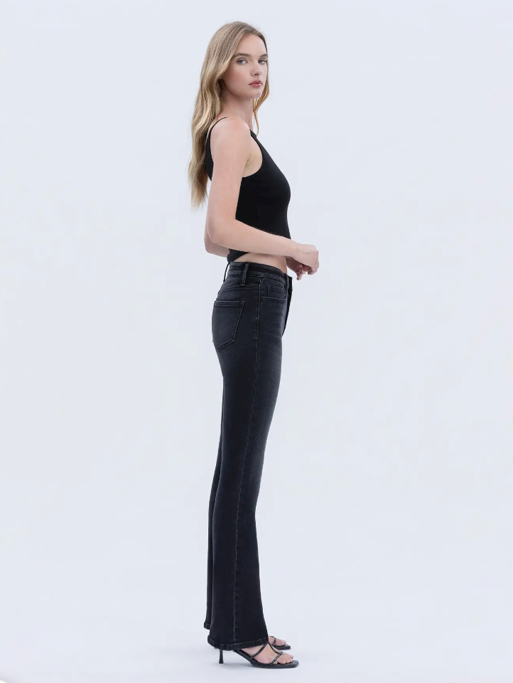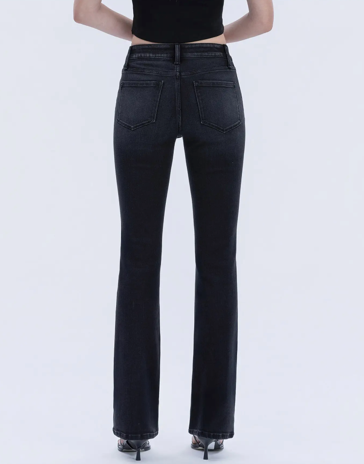 High rise full length slim bootcut jeans Comfort stretch denim, high rise waist, finished hem, full length, slim bootcut jeans F. Rise: 10" / inseam: 32" / leg opening: 17"
