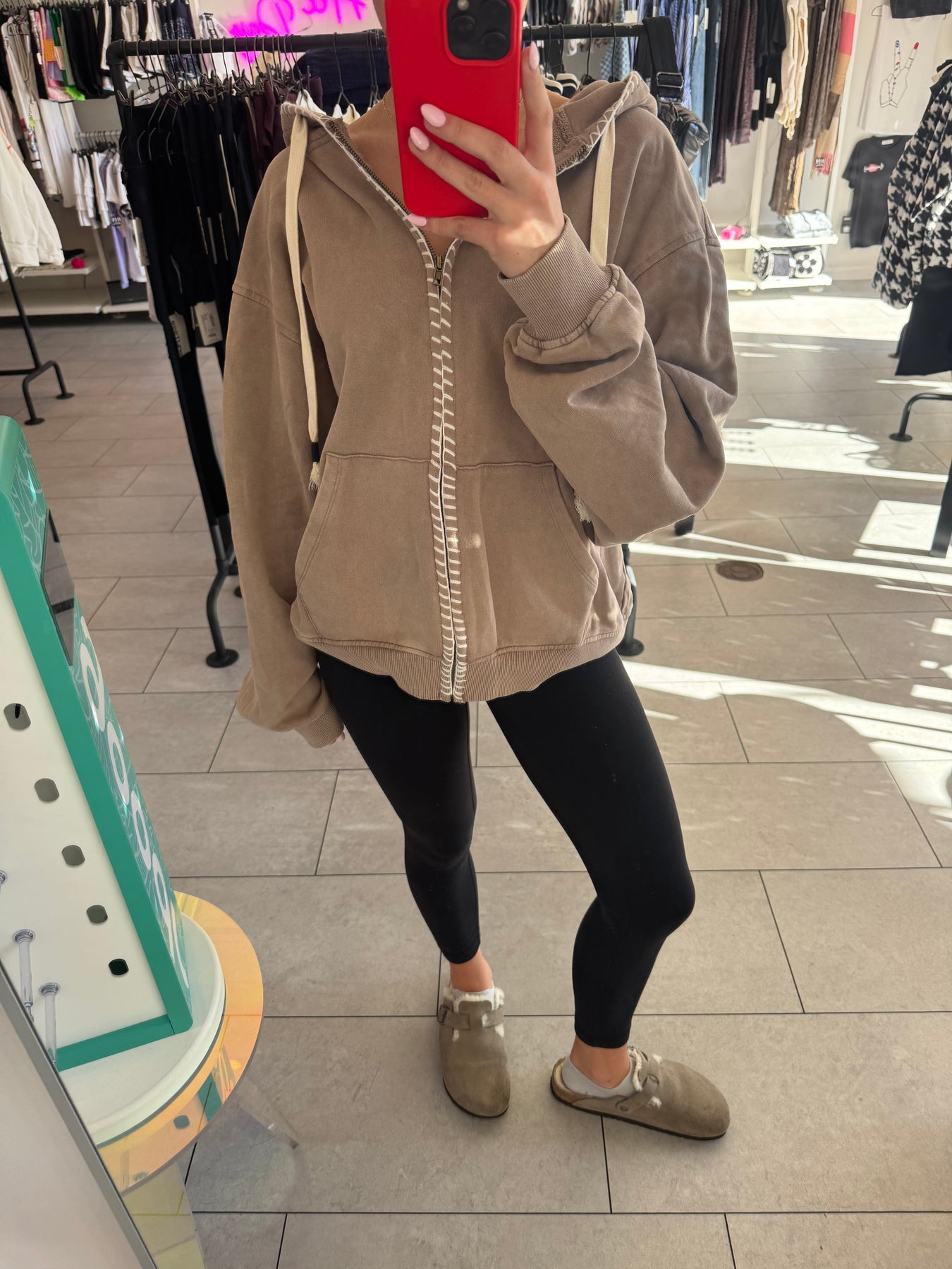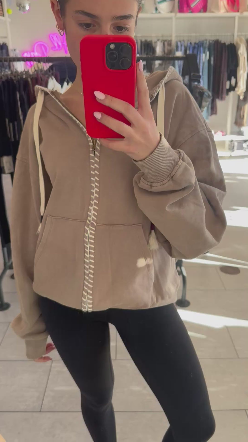Laid-back and effortlessly cool, this oversized hoodie is crafted from soft mineral-wash fabric for a vintage, lived-in vibe. Contrast whipstitch details and tassel drawstrings add playful charm, while dropped shoulders and ribbed trims keep it casual yet polished.