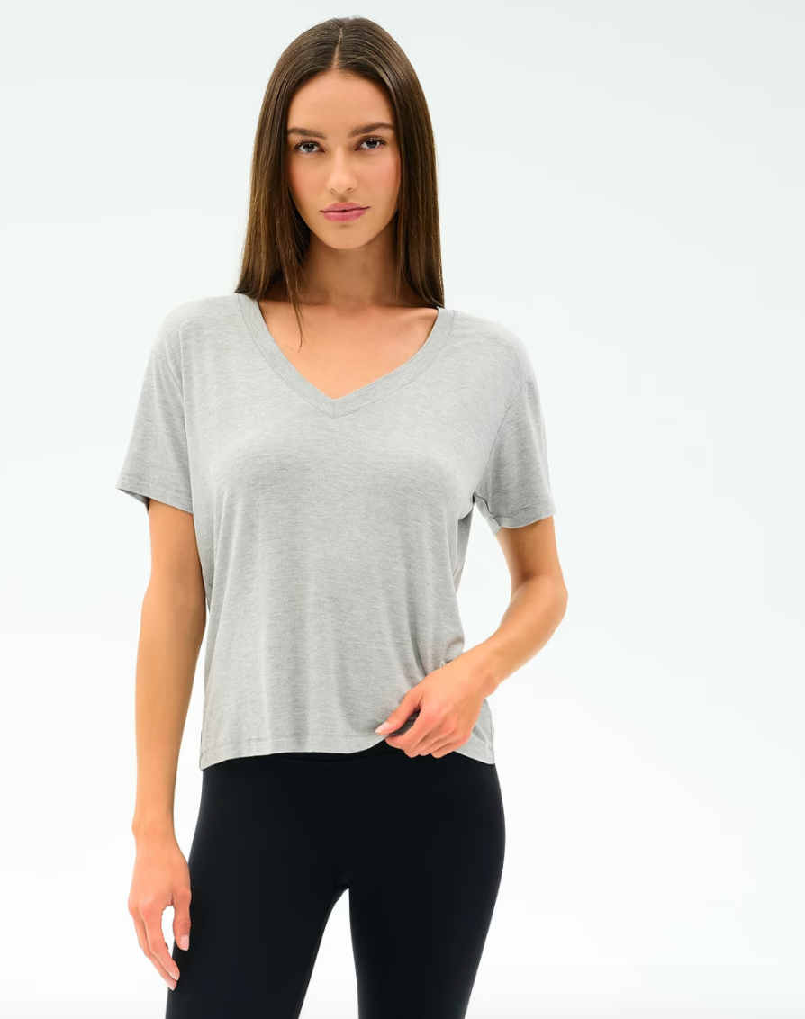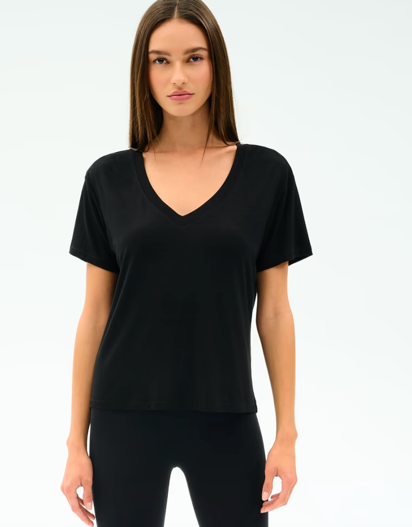 A luxuriously soft jersey V-neck you’ll reach for daily. Made to move with you before and after workouts, offering comfort that feels as good as it looks.