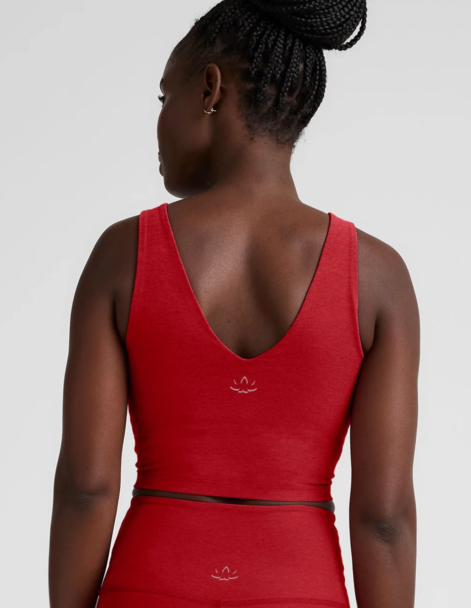 Simple yet super versatile, this cropped tank works for active moments and well, not-so-active moments, too. Design details include a front and back V-neck, a comfortable built-in bra, and the signature softness of our bestselling Spacedye fabric. Out for a powerwalk? Pair with leggings. Out to lunch? Wear over jeans or joggers. Either way, it's gonna be a good day.