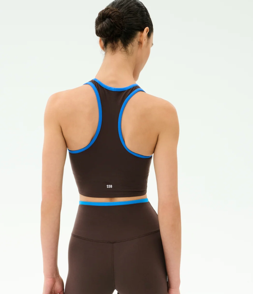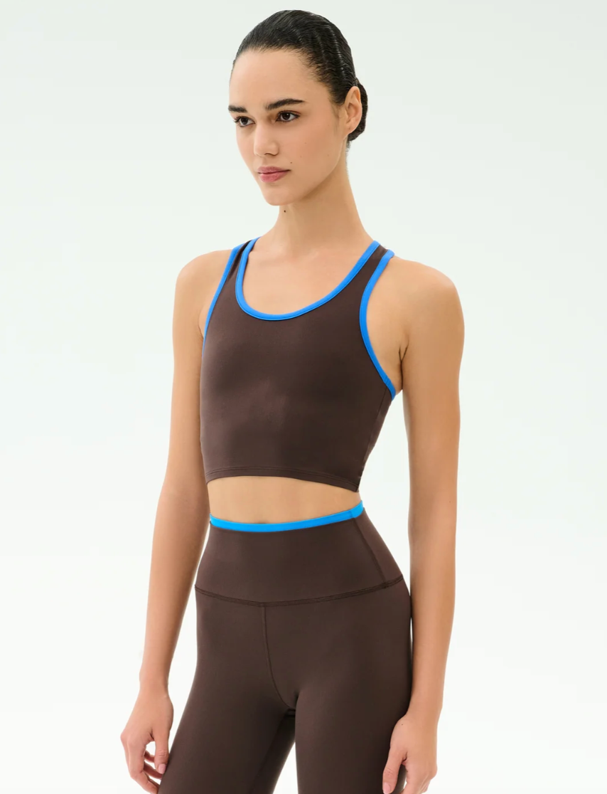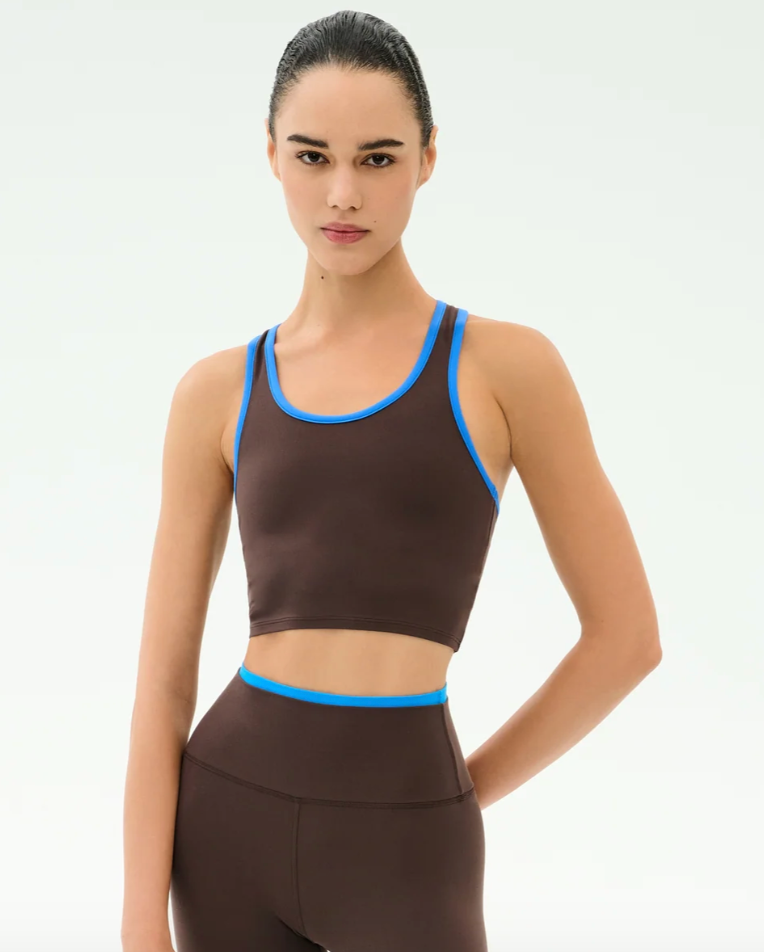 Sophisticated crisp white trim provides a chic touch to this cropped scoop-neck. The super soft ultra luxe Airweight performance fabric gives you superior second skin comfort and freedom.